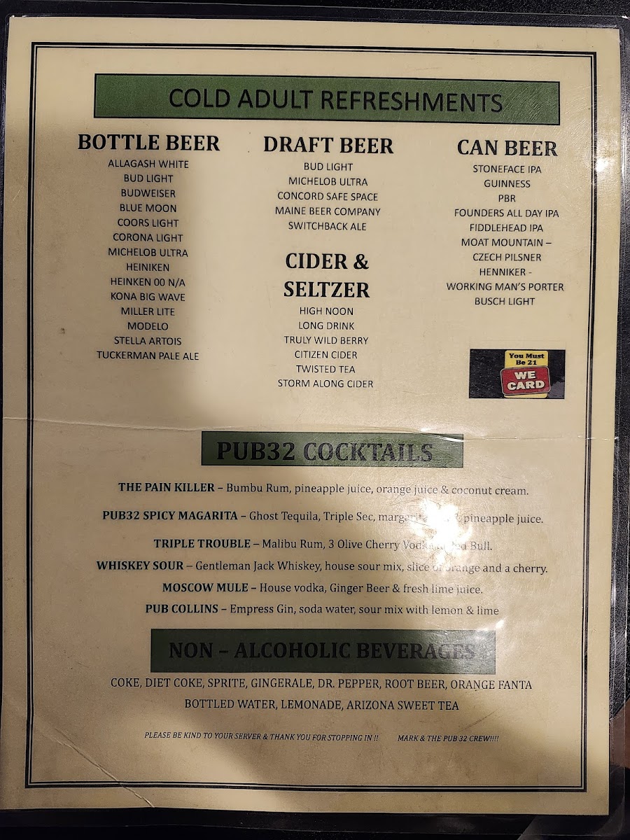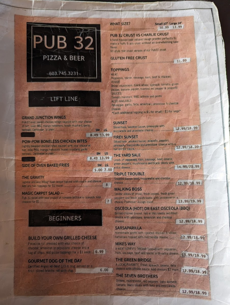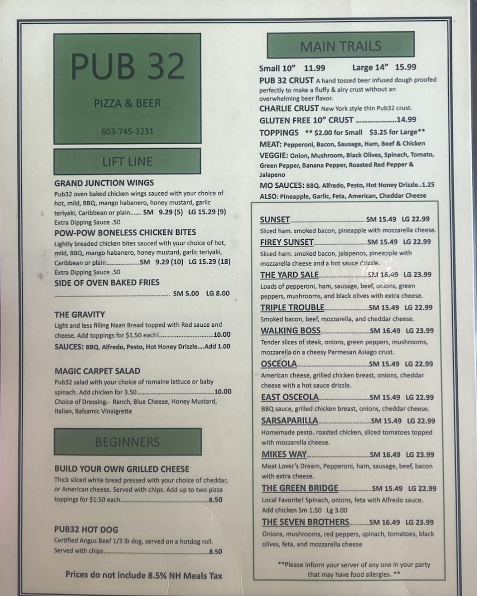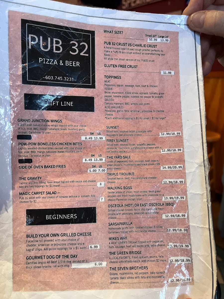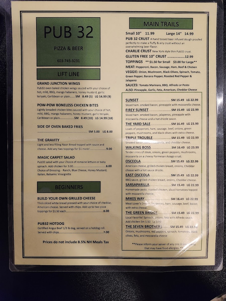 Welcome to Pub 32, a delightful culinary haven nestled at 264 Main St, Lincoln, NH. Known for its exceptional pizza, this pub has quickly become a local favorite, with patrons raving about the delicious toppings and unique crust options, including a beer-infused variety. The ambiance strikes a perfect balance between casual and charmingly gritty, creating an inviting space for diners.